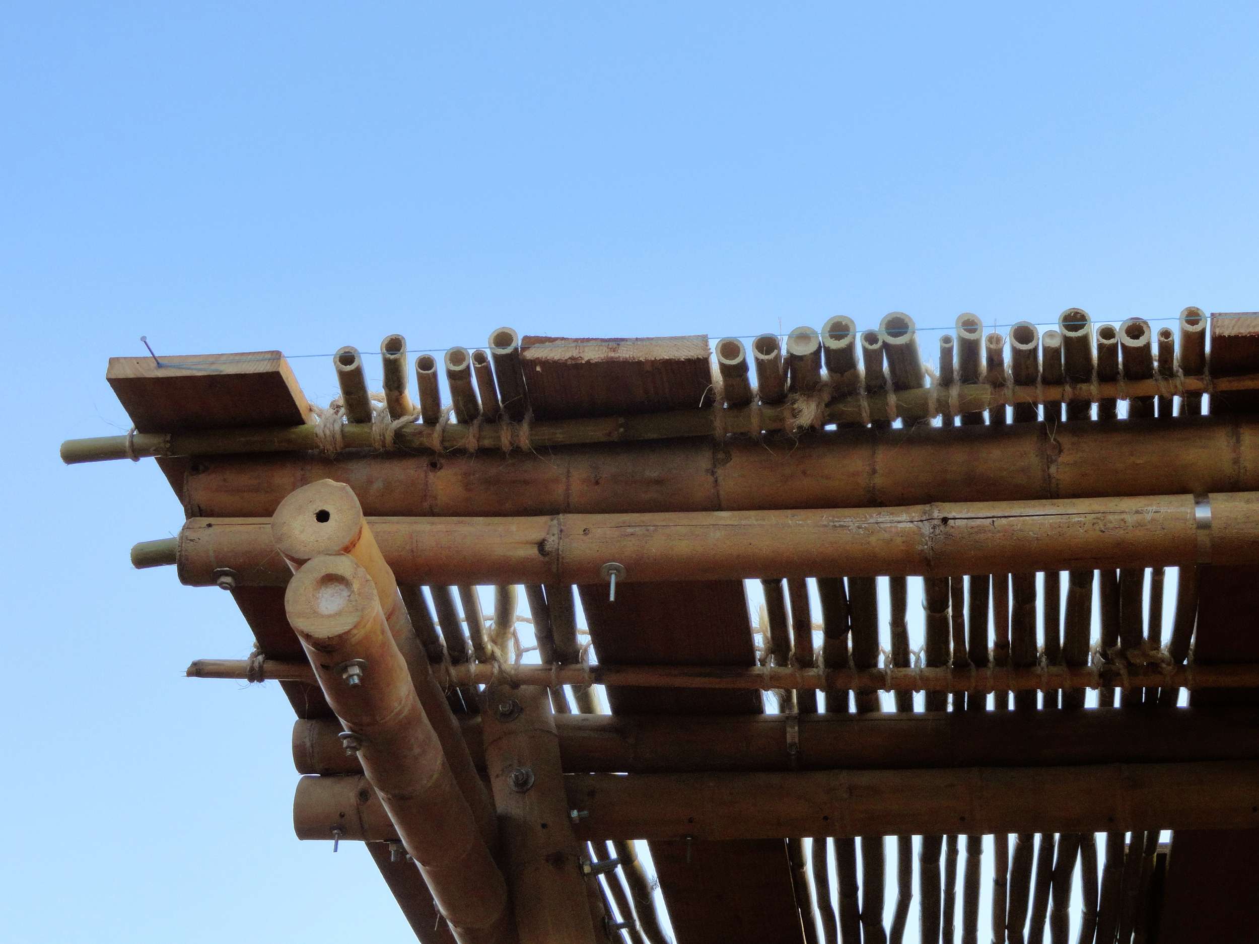 The construction used local materials such as bamboo, earth and ceramic tiles. The techniques used included rammed earth and adobe walls, clay floors and wall finishes, bamboo structure and reed ceiligns among others.